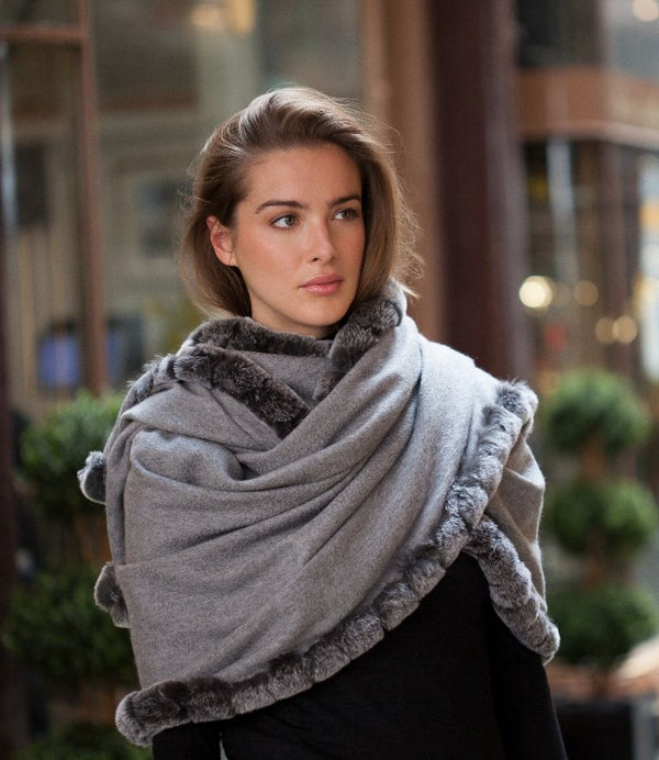 Our exquisite pashmina cashmere shawls, shown here in Fumo Grey, are the perfect way to keep warm during your flight, or while driving. Or, why not try our fur cashmere scarf in grey for a casual style? These shades will look effortlessly chic, which will take you from your cabin to the beach with ease, or will serve as the perfect accessory for venturing into the city.
