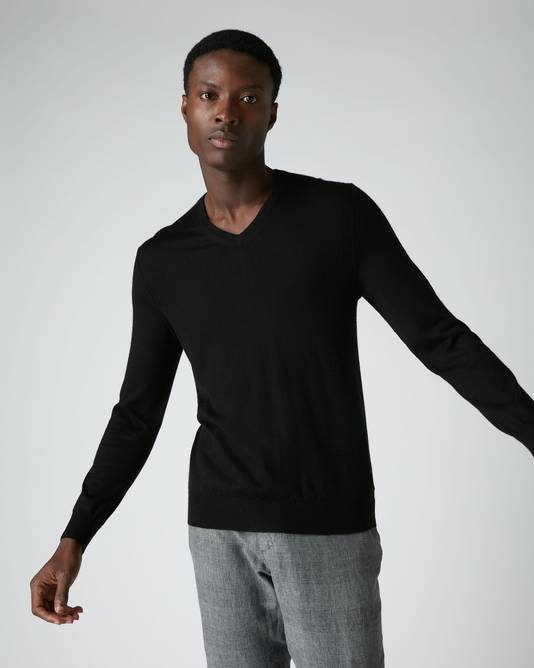 007 Fine Gauge Cashmere V Neck Sweater In Black
