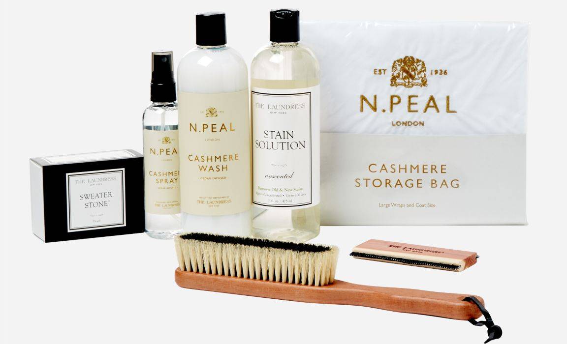 To wash your cashmere by hand add a few drops of our cashmere wash to a clean bowl of lukewarm water. Mix well and allow your garments to soak for a few minutes, gently squeezing the water through the fabric. Rinse well with lukewarm water. If your cashmere is stained, you may need to use our N. Peal Stain solution.