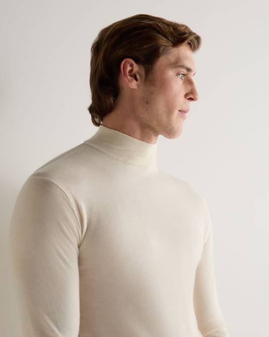 Men's Fine Gauge Cashmere Turtle Neck Sweater In New Ivory White