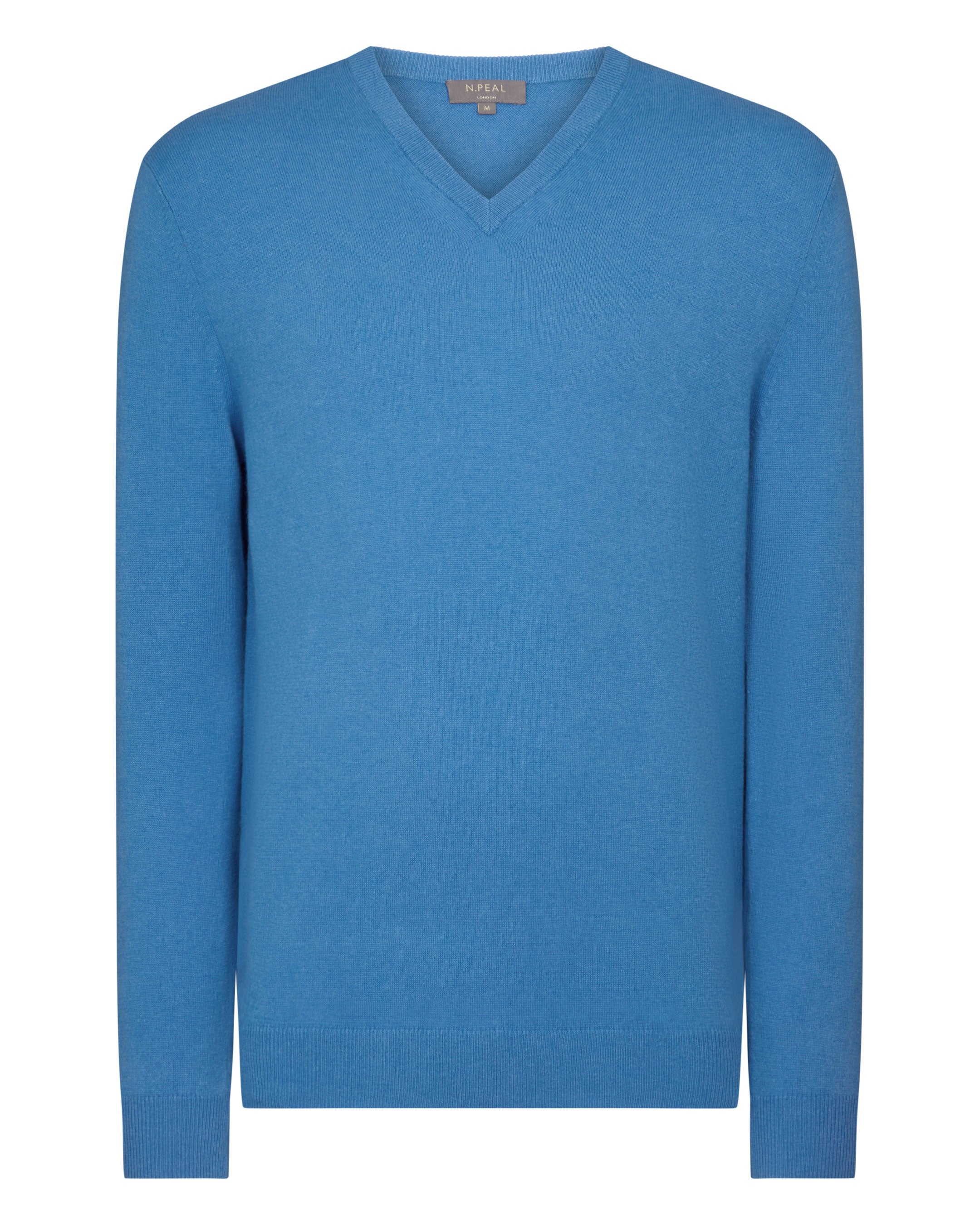 Men's Burlington V Neck Cashmere Sweater In Sunshine Blue
