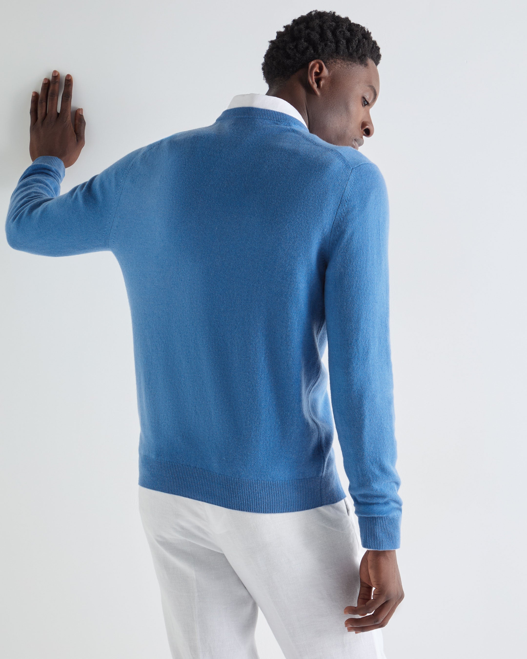 An effortless layer for refined dressing, this V-neck jumper blends classic tailoring with modern ease. Knitted from 100% organic 1-ply cashmere, it offers natural softness with a fine, breathable finish — perfect for wearing over a crisp shirt or under a tailored jacket.