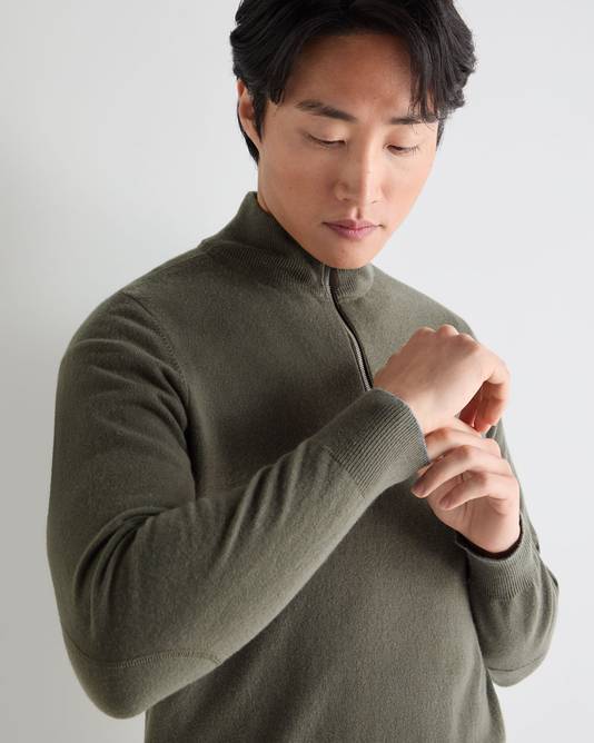 Men's Carnaby Half Zip Cashmere Sweater In Olive Green