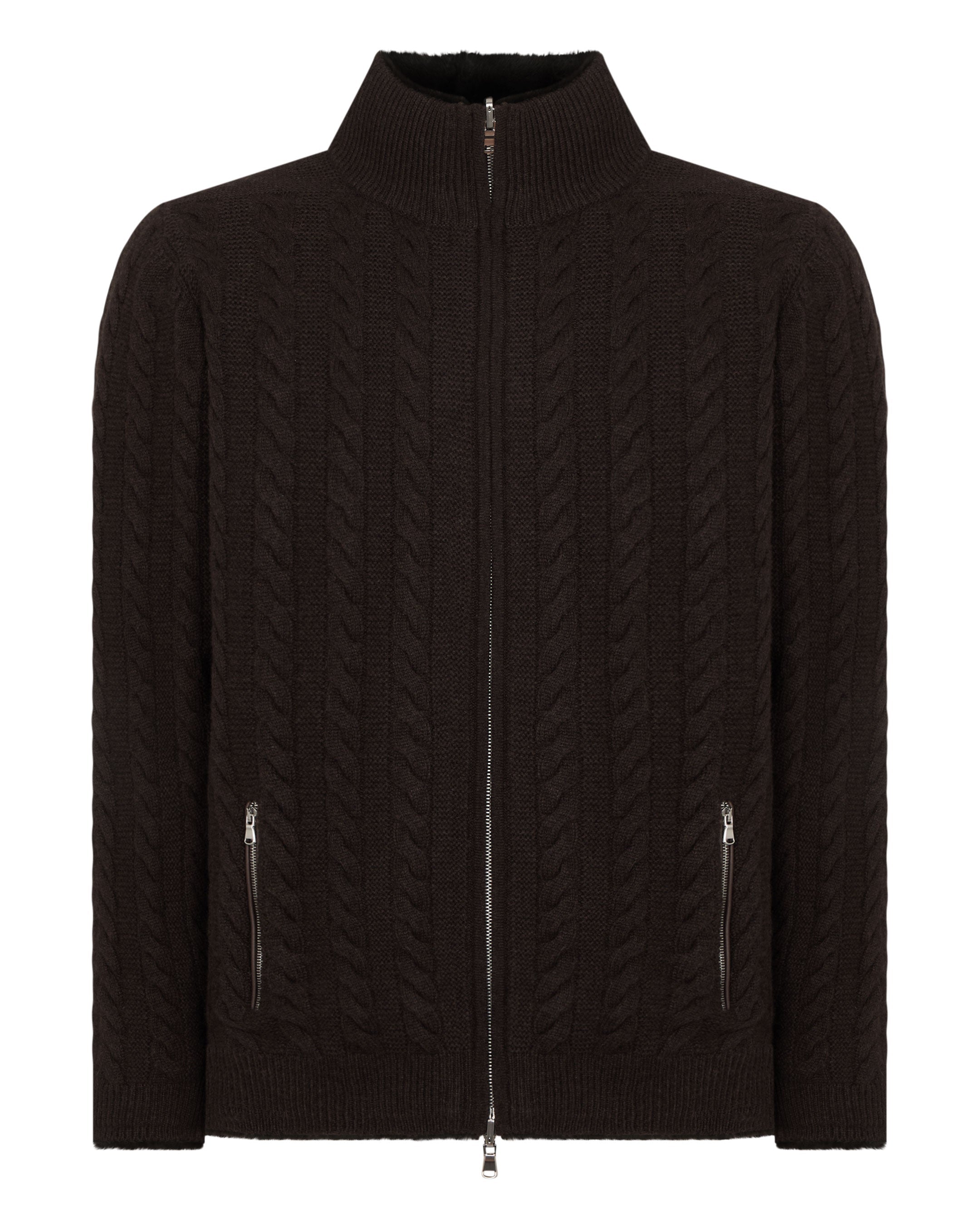 Men's Aspen Cashmere Cable Fur Cardigan In Chocolate Brown