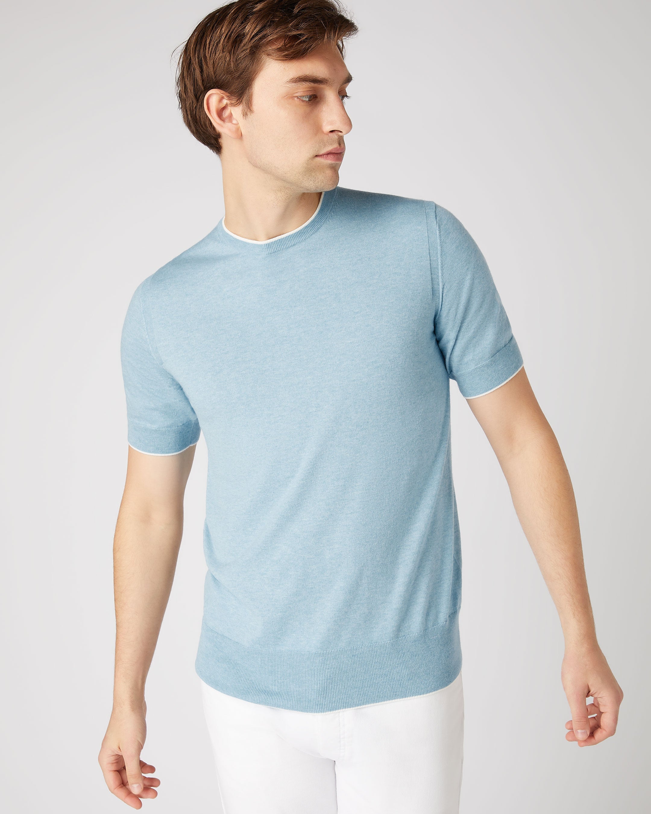 Men's Newquay Cotton Cashmere T-Shirt In Cornflower Blue