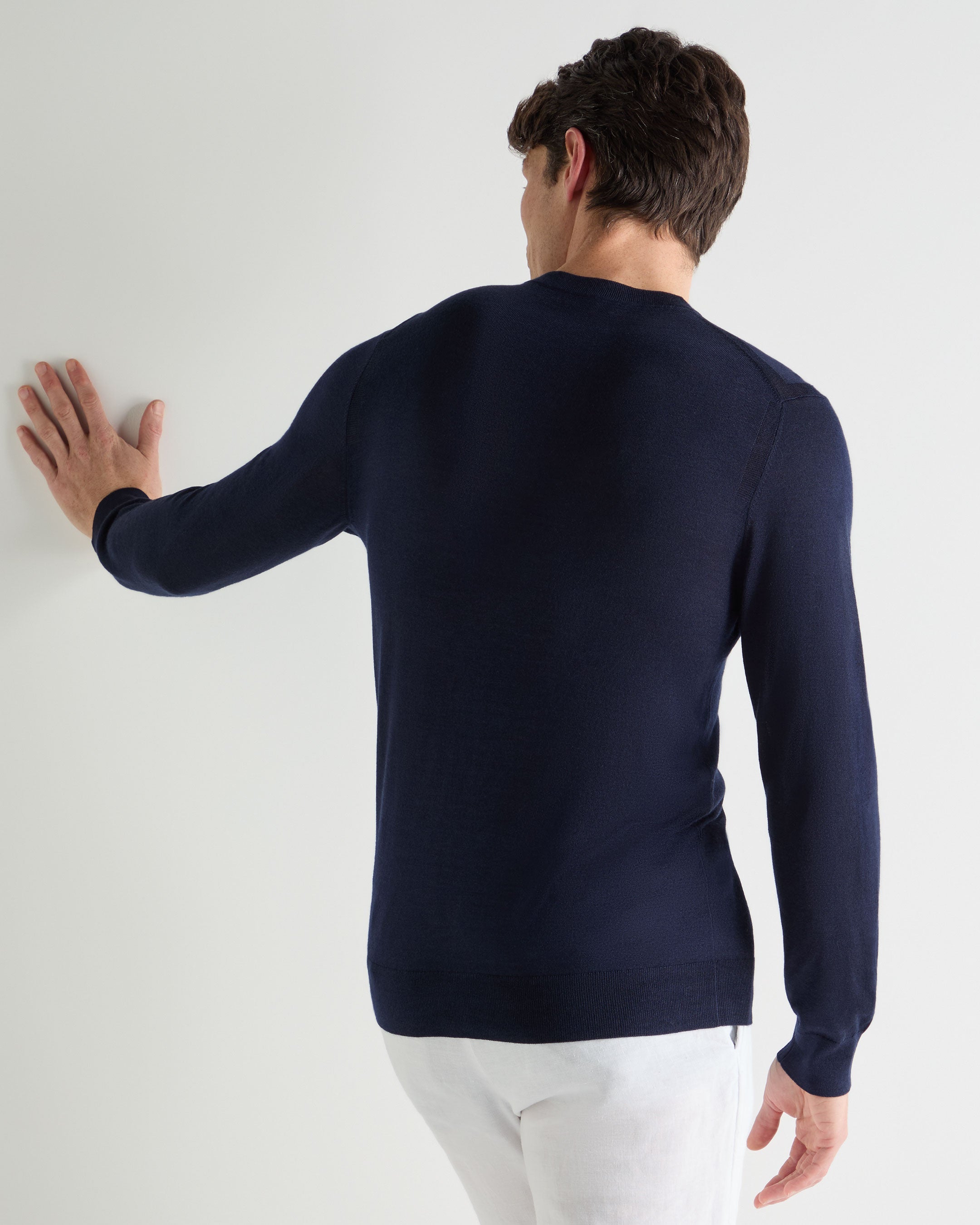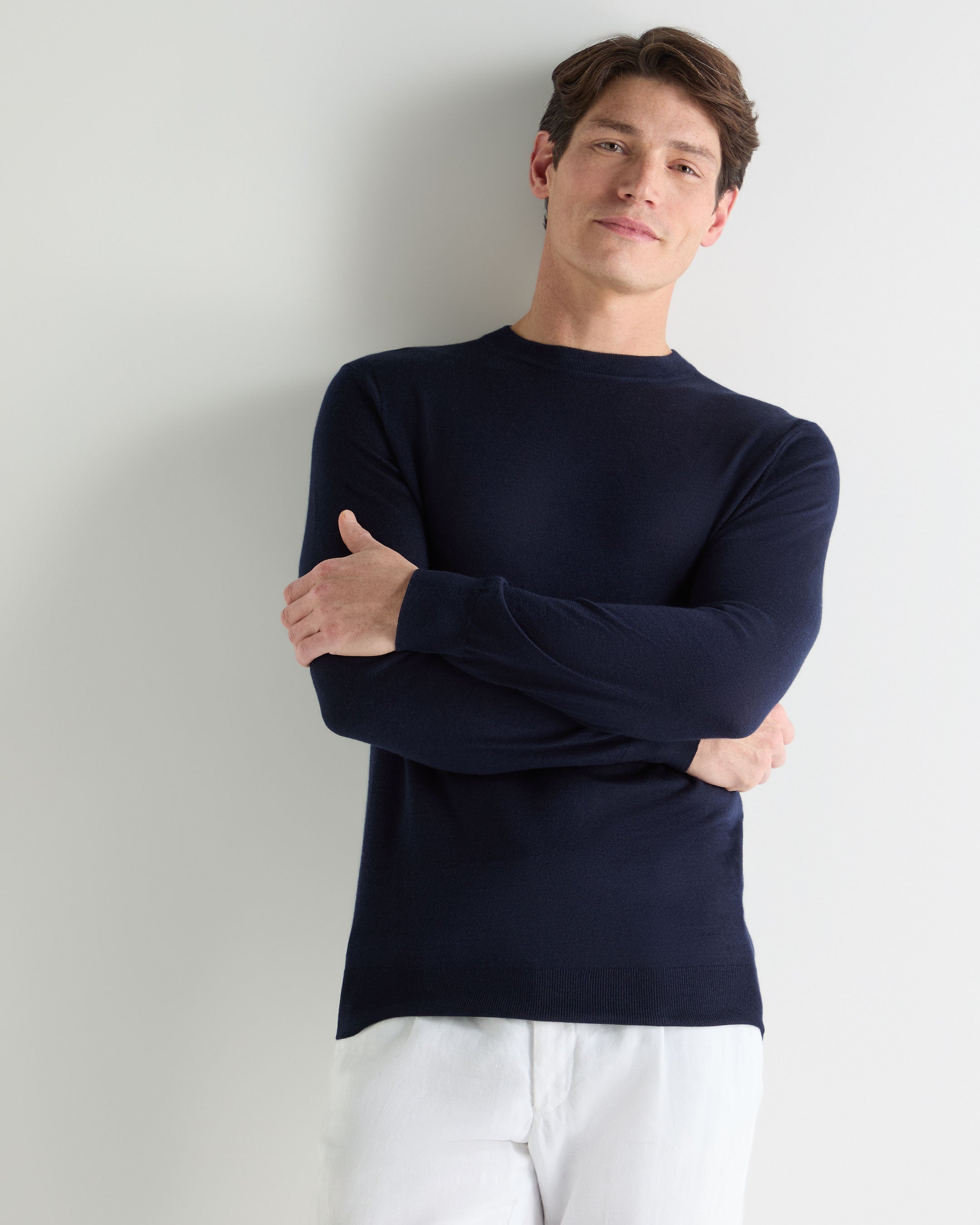 Refined and effortlessly versatile, this fine-gauge jumper brings understated luxury to every setting. Crafted from a smooth blend of 70% cashmere and 30% silk, it offers a fluid drape and a naturally lustrous finish — the perfect layer for relaxed sophistication year-round.