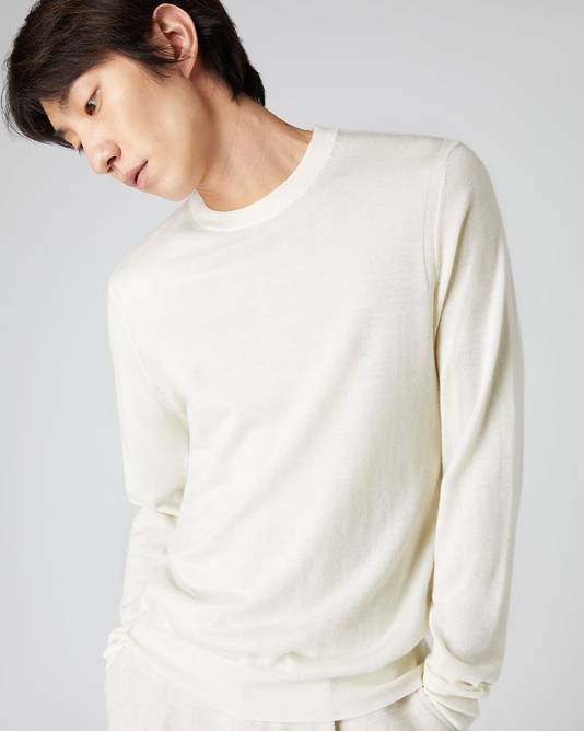 Men's Covent Fine Gauge Cashmere Round Neck Sweater In New Ivory White