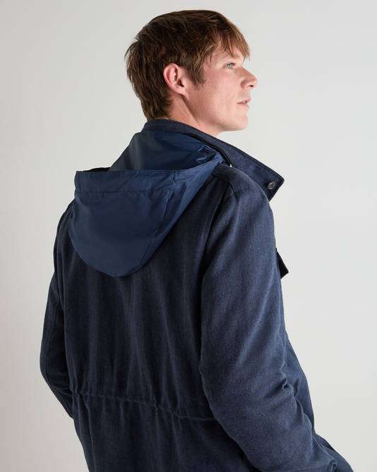 Men's Hampton Linen Blend Field Jacket In Navy Blue Herringbone