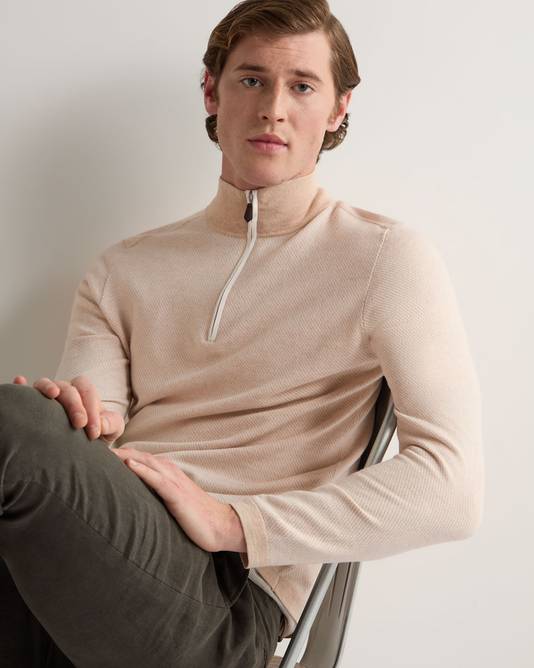 Men's Salcombe Jacquard Half Zip Cotton Cashmere Sweater In Sandstone Brown