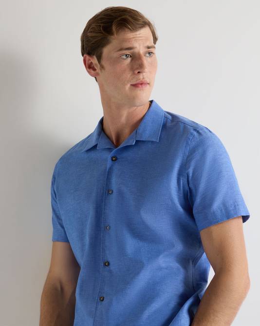 - Features a relaxed Cuban collar and button-down front for a breezy feel