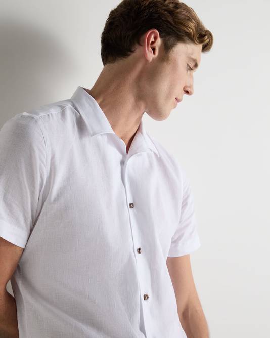 - Features a relaxed Cuban collar and button-down front for a breezy feel