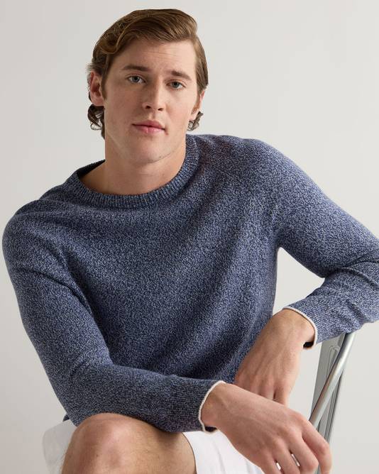 Men's Marl Cotton Cashmere Sweater In Blue Marl