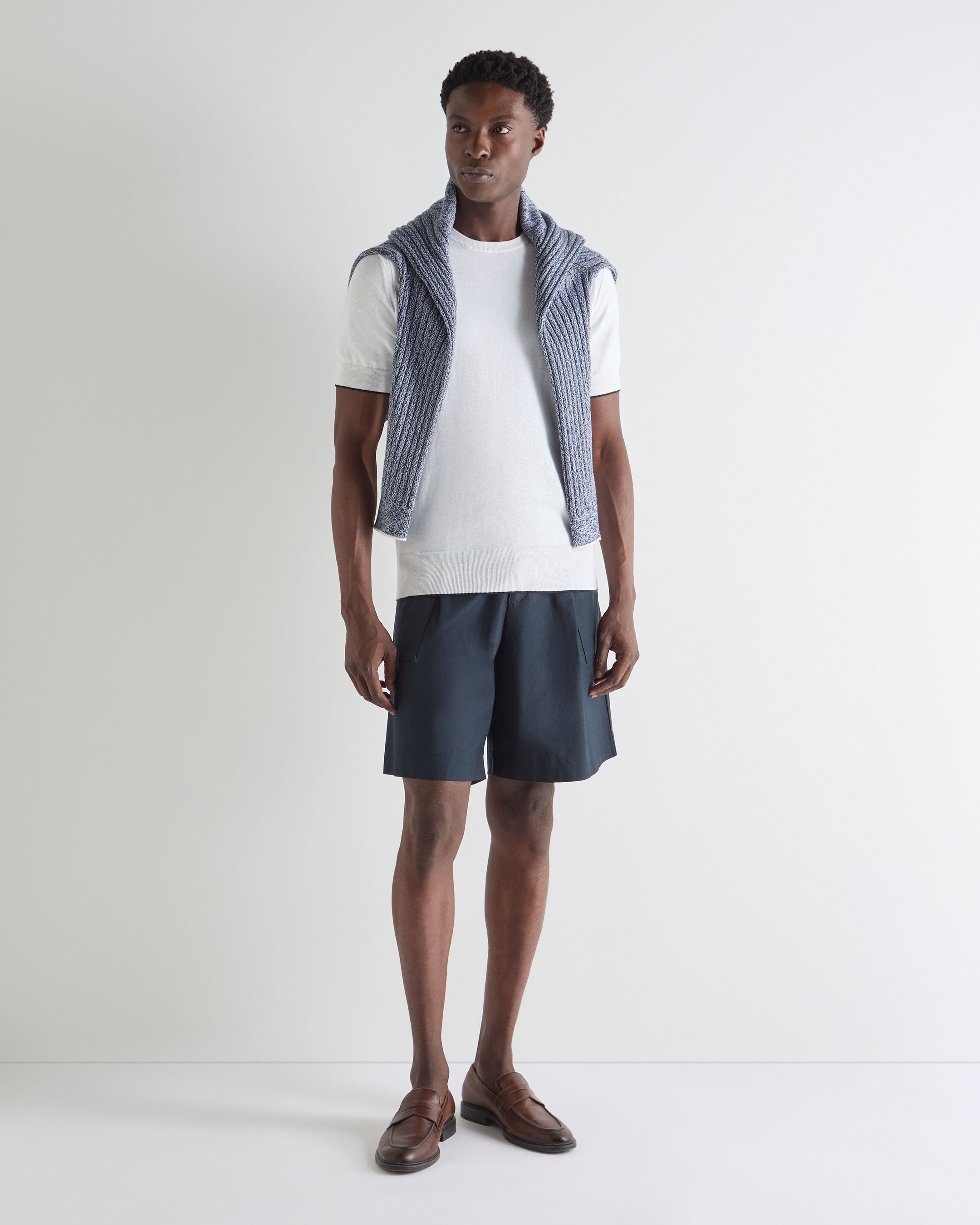 – Crafted from a considered blend of 85% Supima USA-grown cotton and 15% cashmere, combining natural breathability with a soft, elevated handle