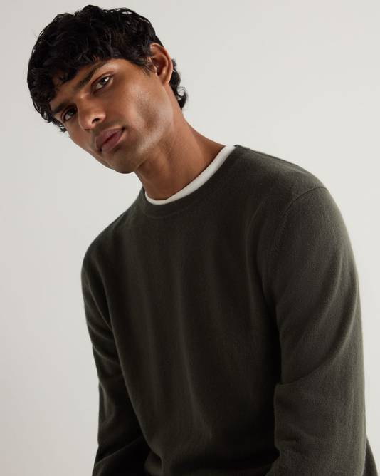 Men's Oxford Round Neck Cashmere Sweater In Arabica Khaki Green