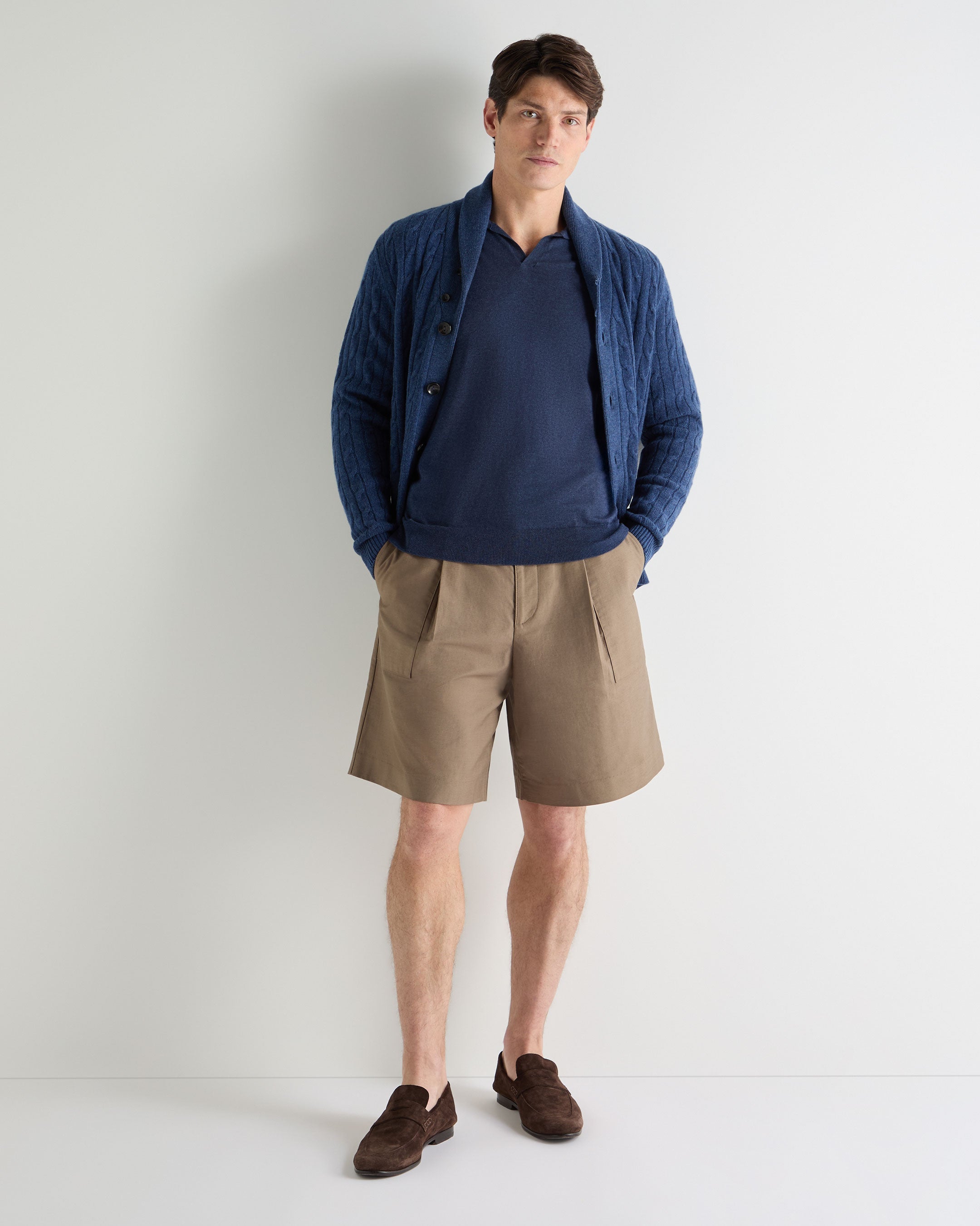 – Crafted from a refined blend of 85% Supima USA-grown cotton and 15% Mongolian cashmere, balancing natural breathability with a soft, considered handle