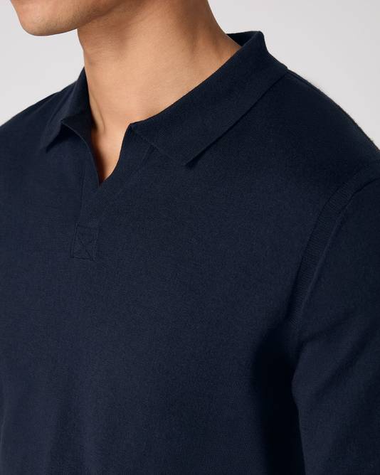 Men's Polo Cotton Cashmere T-Shirt In Navy Blue