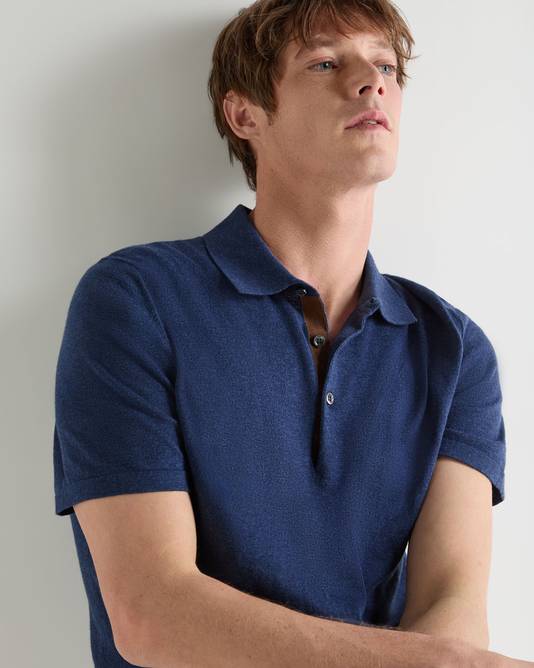 Men's Polzeath Cotton Cashmere Polo T-Shirt In Dark Denim Blue