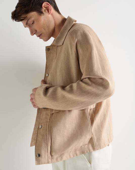 Men's Raglan Linen Blend Herringbone Jacket In Light Brown