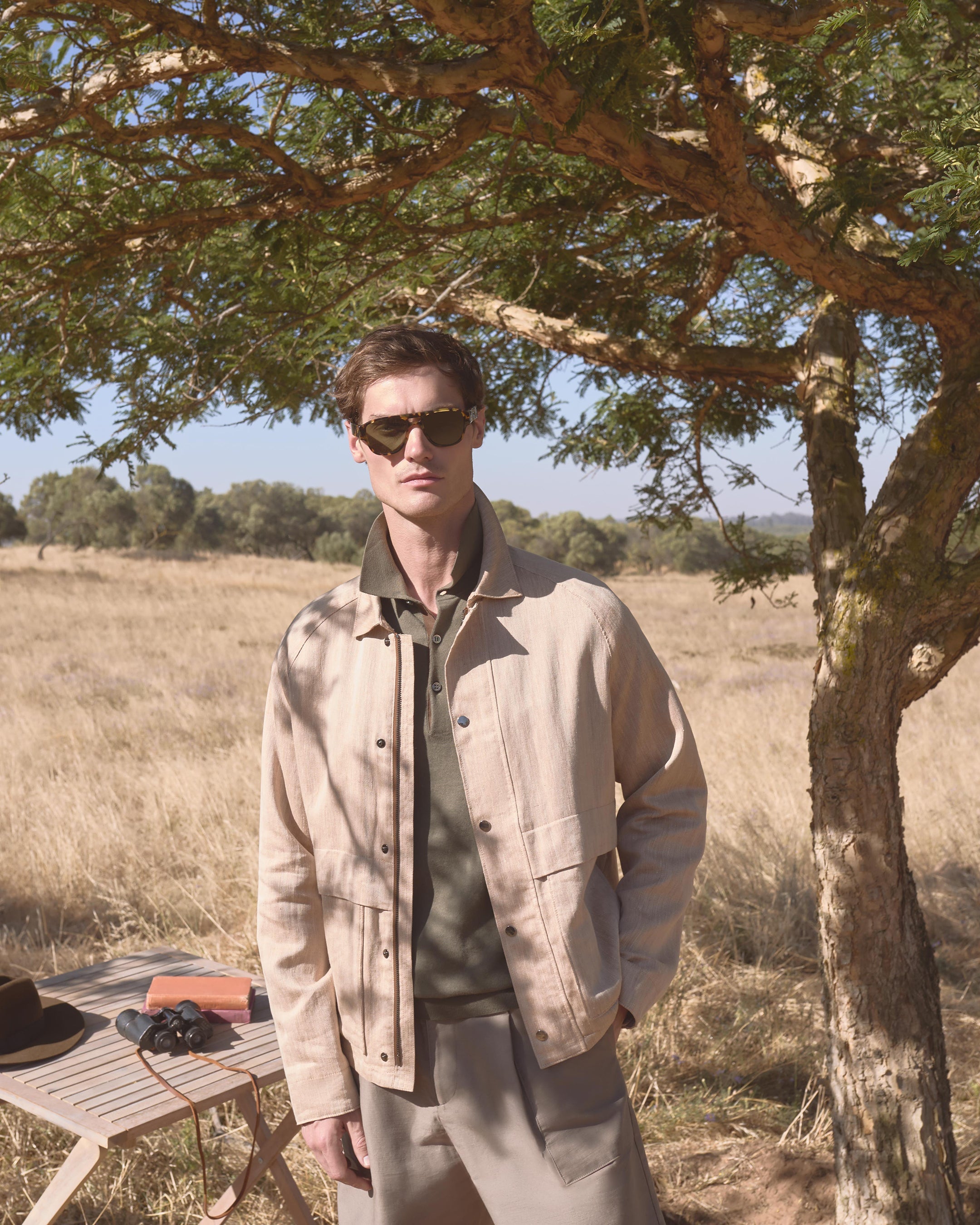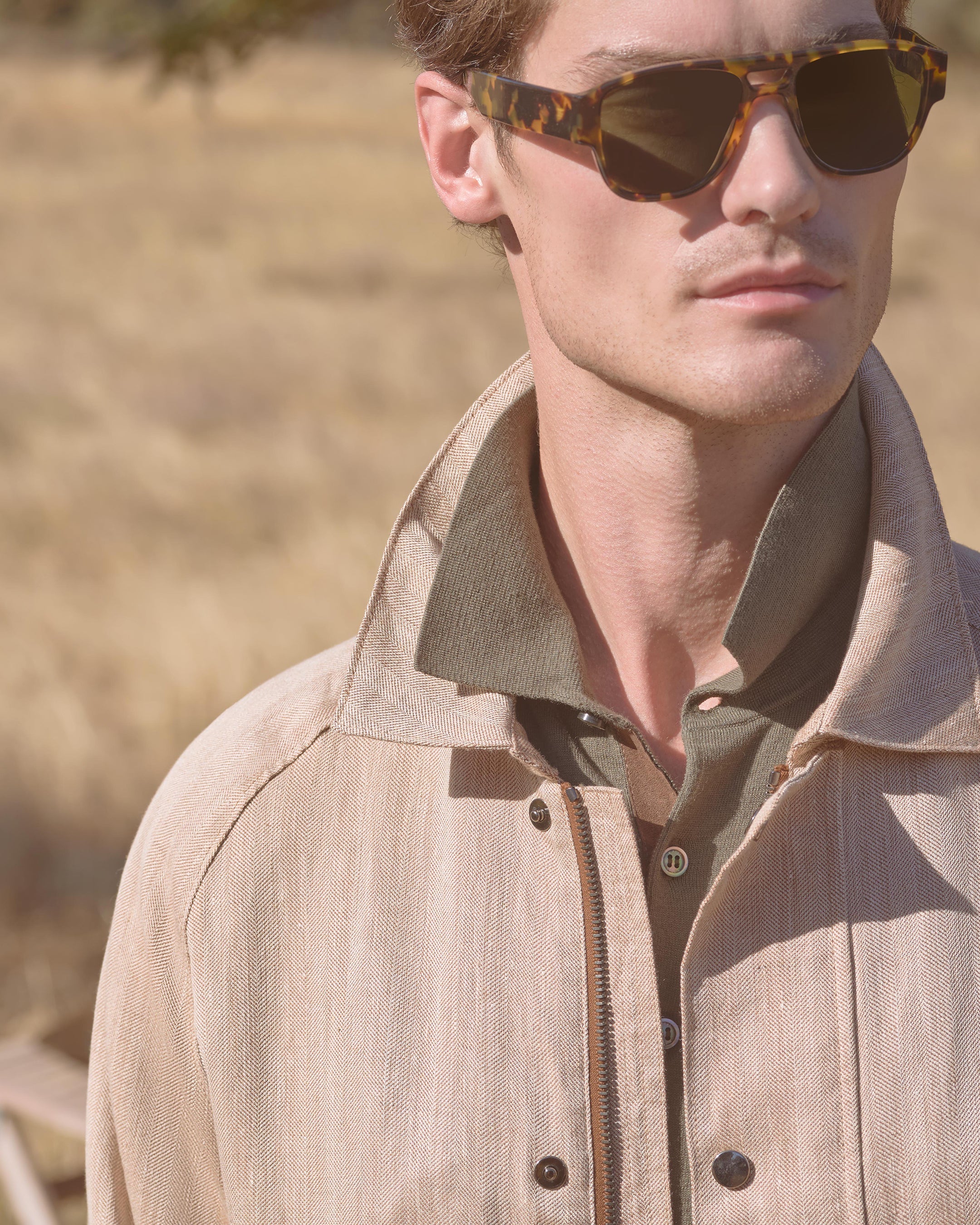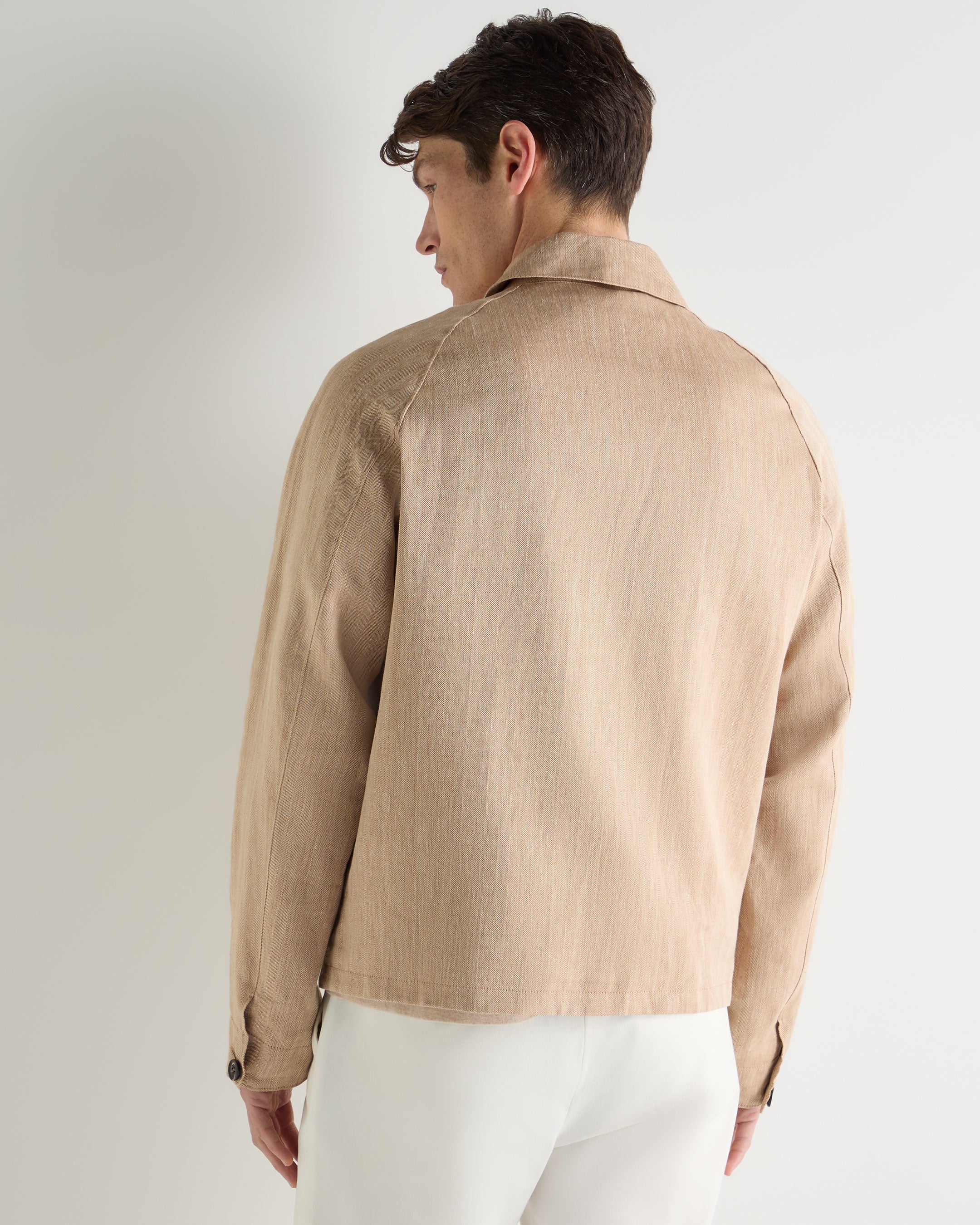A relaxed jacket designed for warm-weather movement and understated polish. Cut in a beautiful linen-rich herringbone with a softly structured feel, this piece brings quiet confidence to days spent travelling, exploring new cities or easing into evenings outdoors.