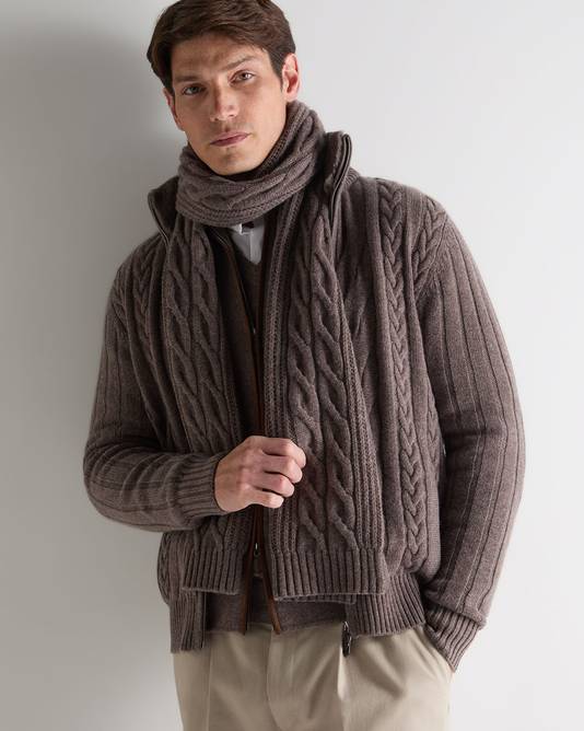 Unisex Cable Rib Cashmere Scarf In Otter Brown