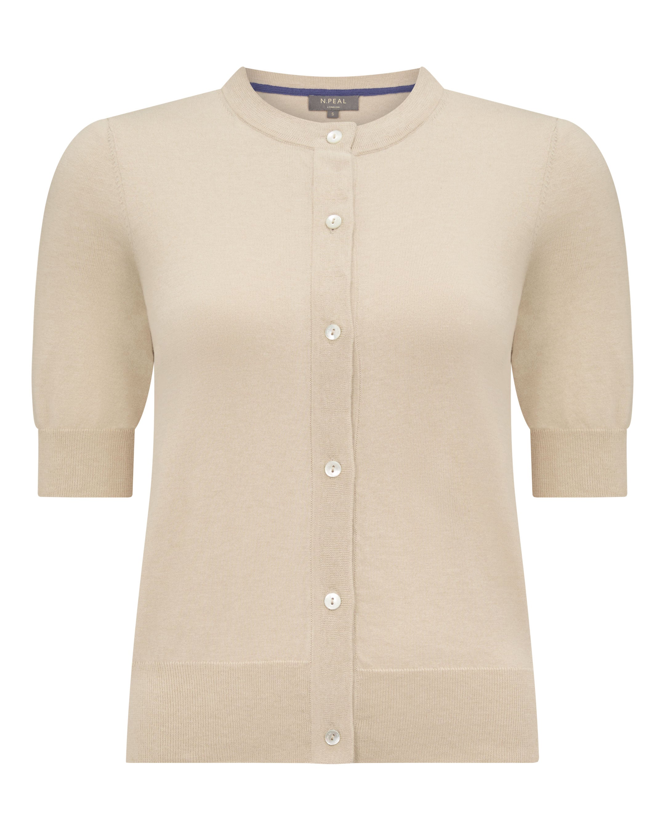 Women's Cotton Cashmere Short Sleeve Cardigan In Natural Brown