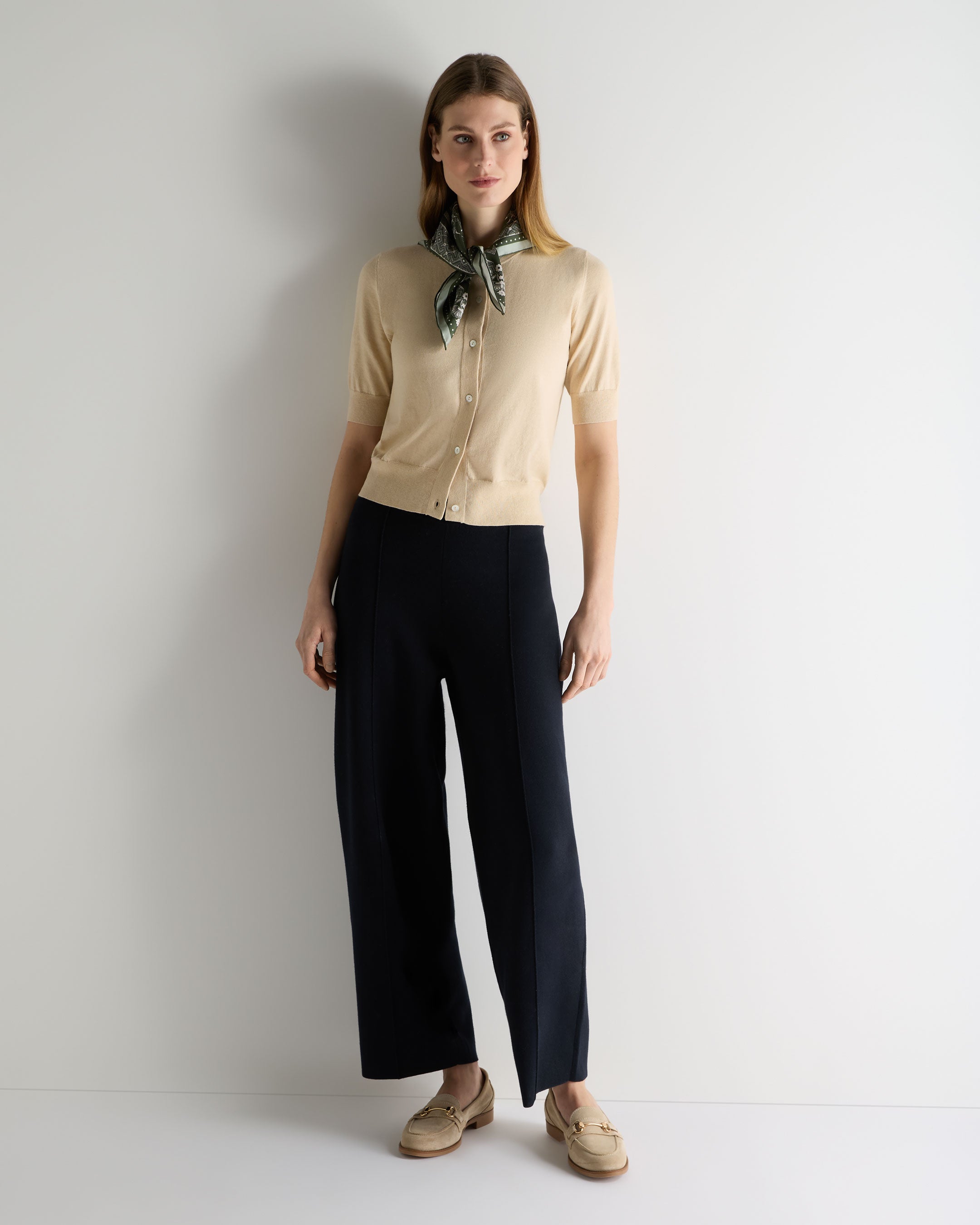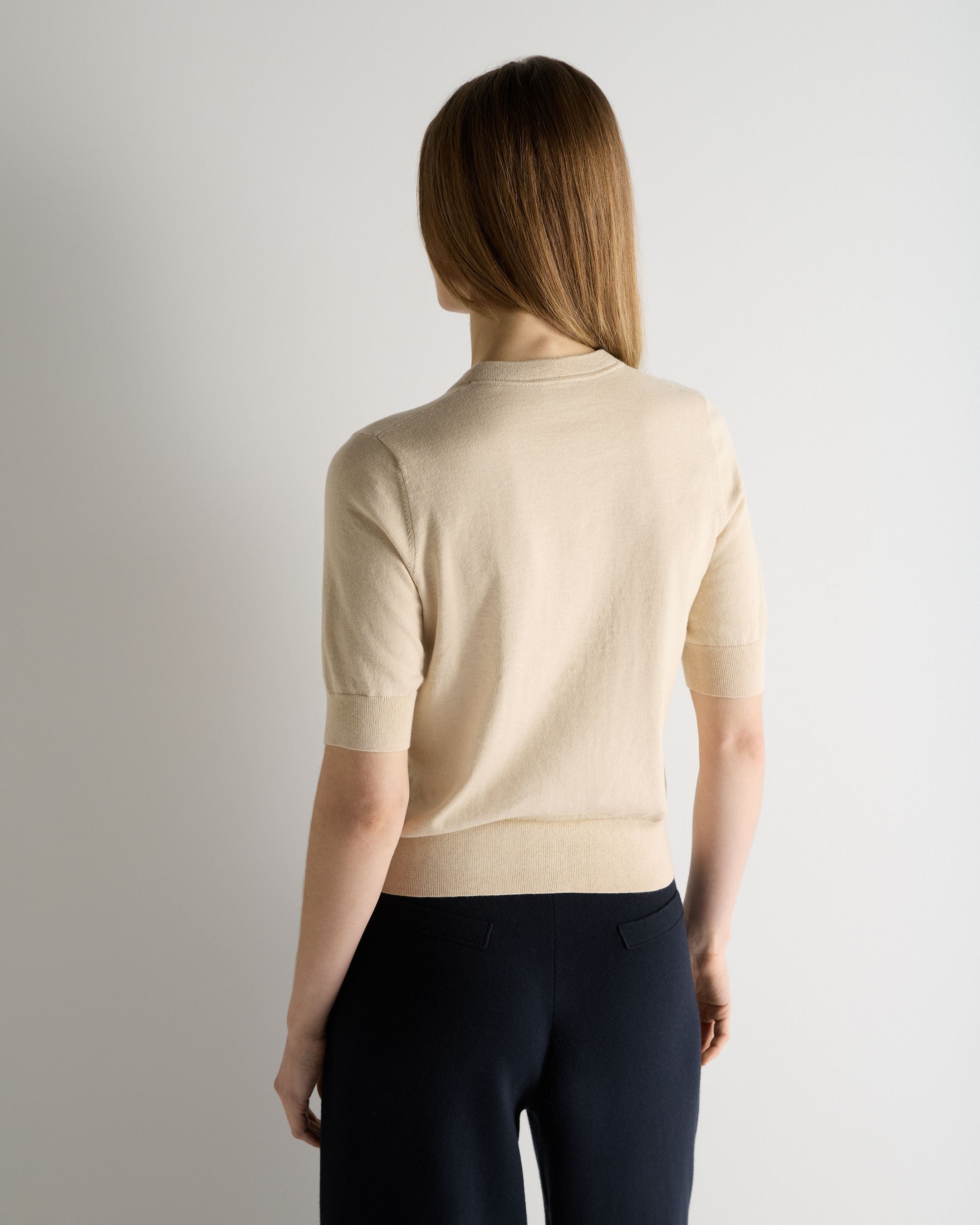 A refined warm-weather layer designed for days spent travelling light. This short-sleeve cardigan brings the ease of a T-shirt with the polish of fine knitwear, moving effortlessly from daytime plans to relaxed evenings at destination.