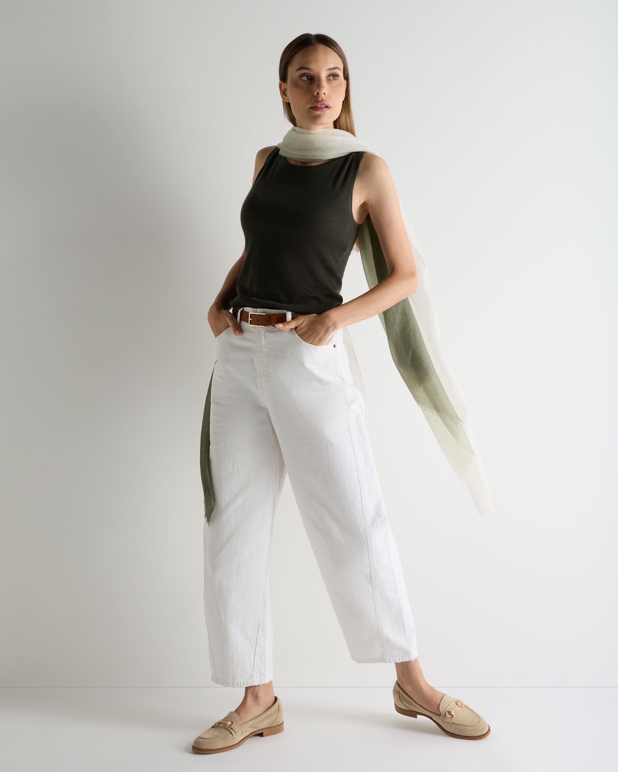 An elevated essential for warm destinations and refined layering, this superfine cashmere shell top offers a sleek, understated elegance that moves effortlessly from day to evening. Its clean, sleeveless silhouette creates a naturally refined line, while the lightweight 1-ply knit delivers a soft, breathable feel ideal for travel, summer dressing or pairing beneath tailoring. Elegant on its own and sophisticated under a jacket, it’s a versatile piece you’ll return to again and again.