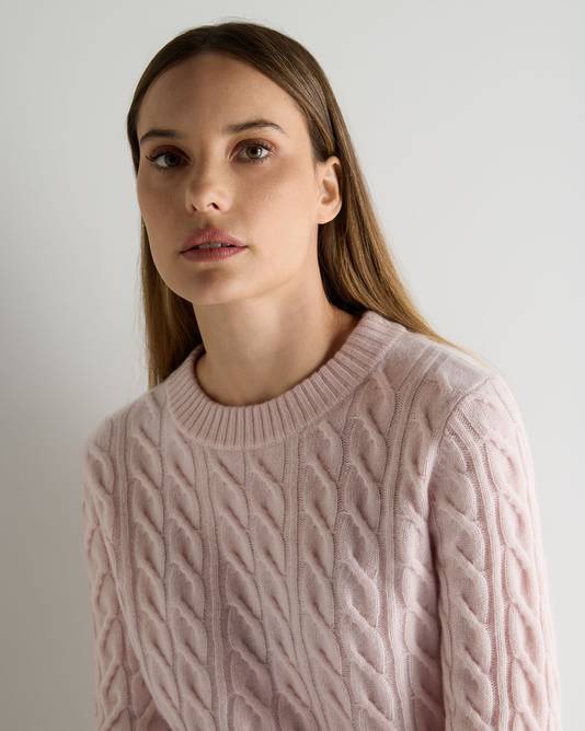 Women's Emilia Cable Round Neck Cashmere Sweater In Powder Pink