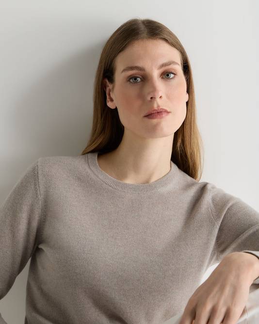 Women's Evie Classic Round Neck Cashmere Sweater In Oat Grey