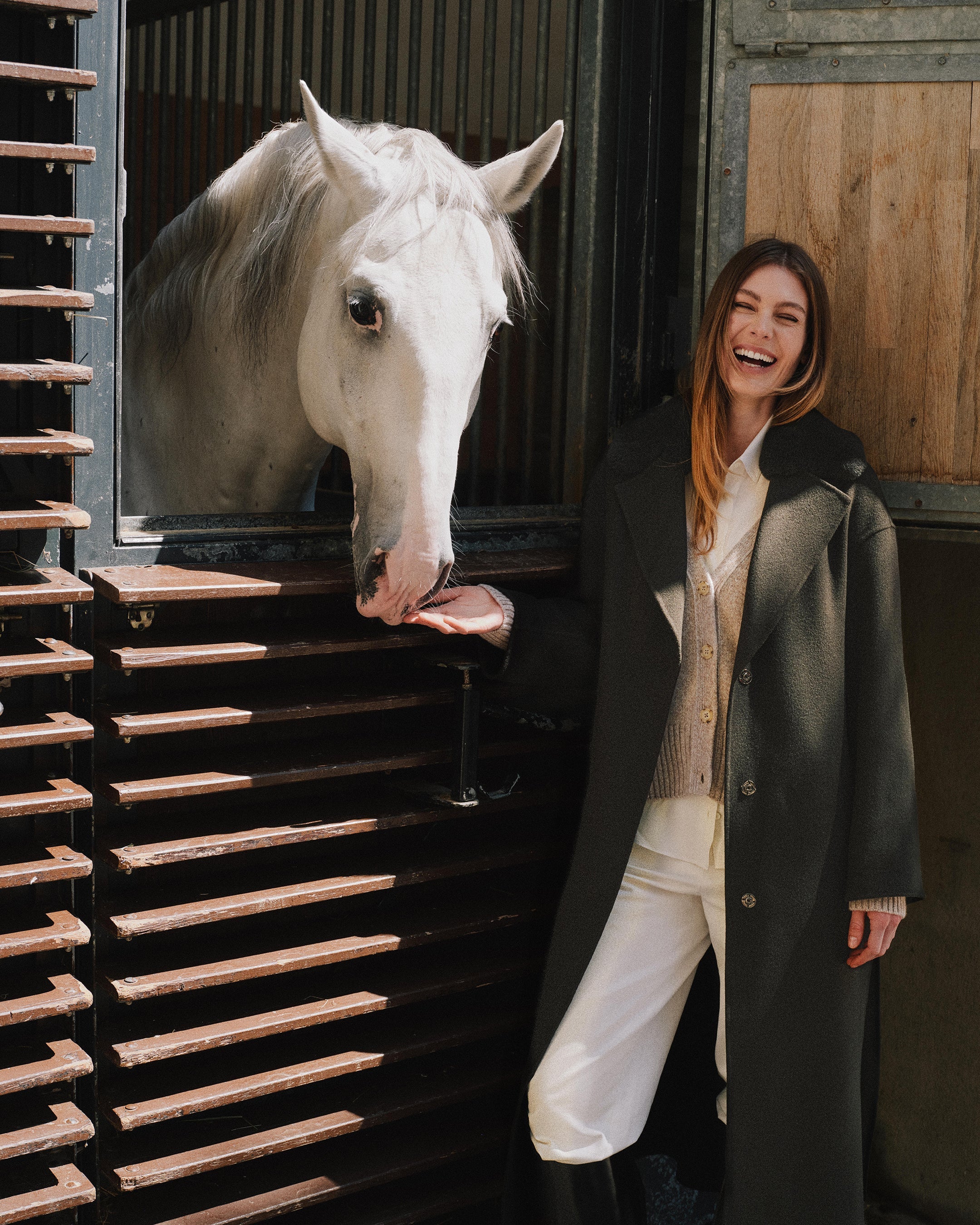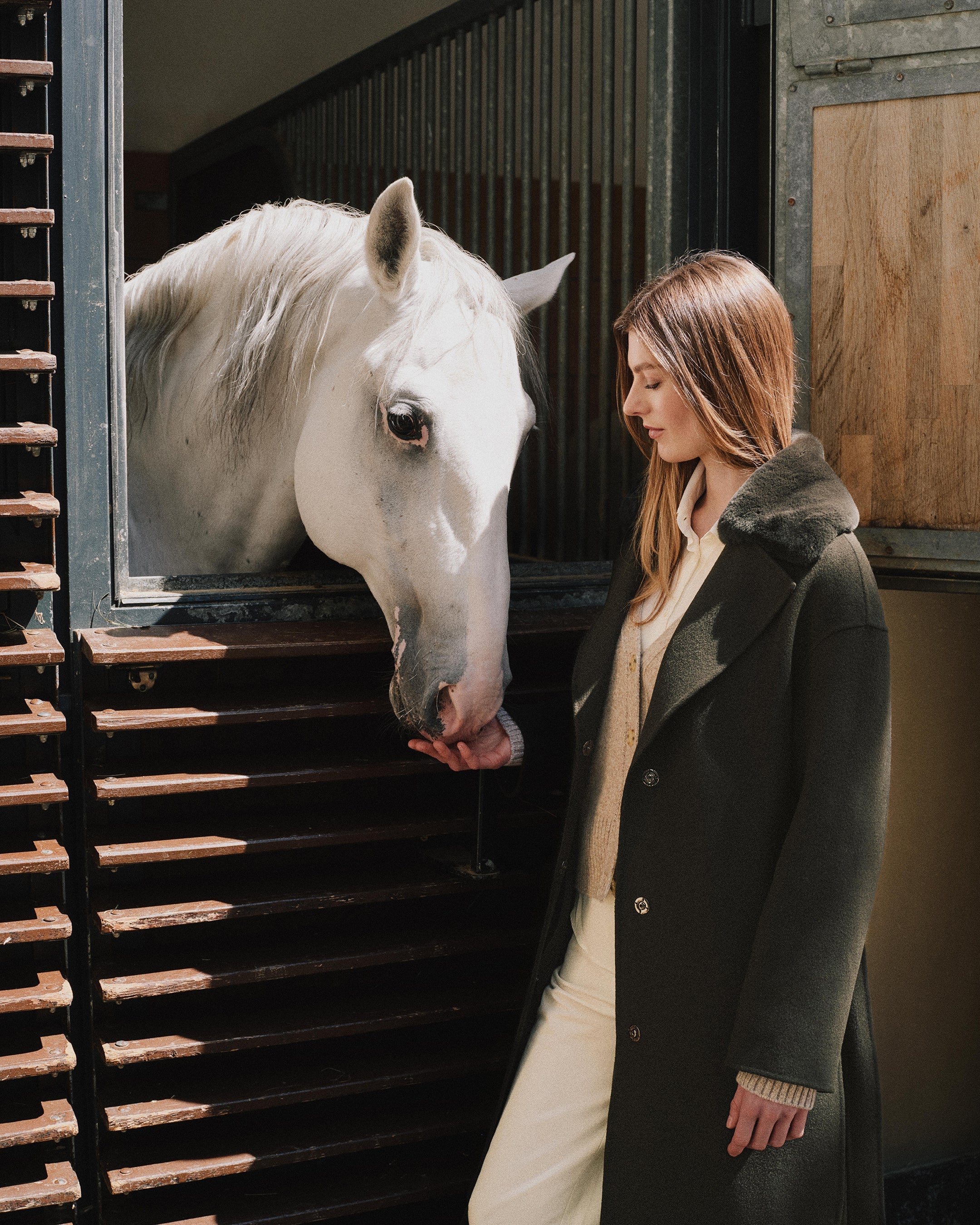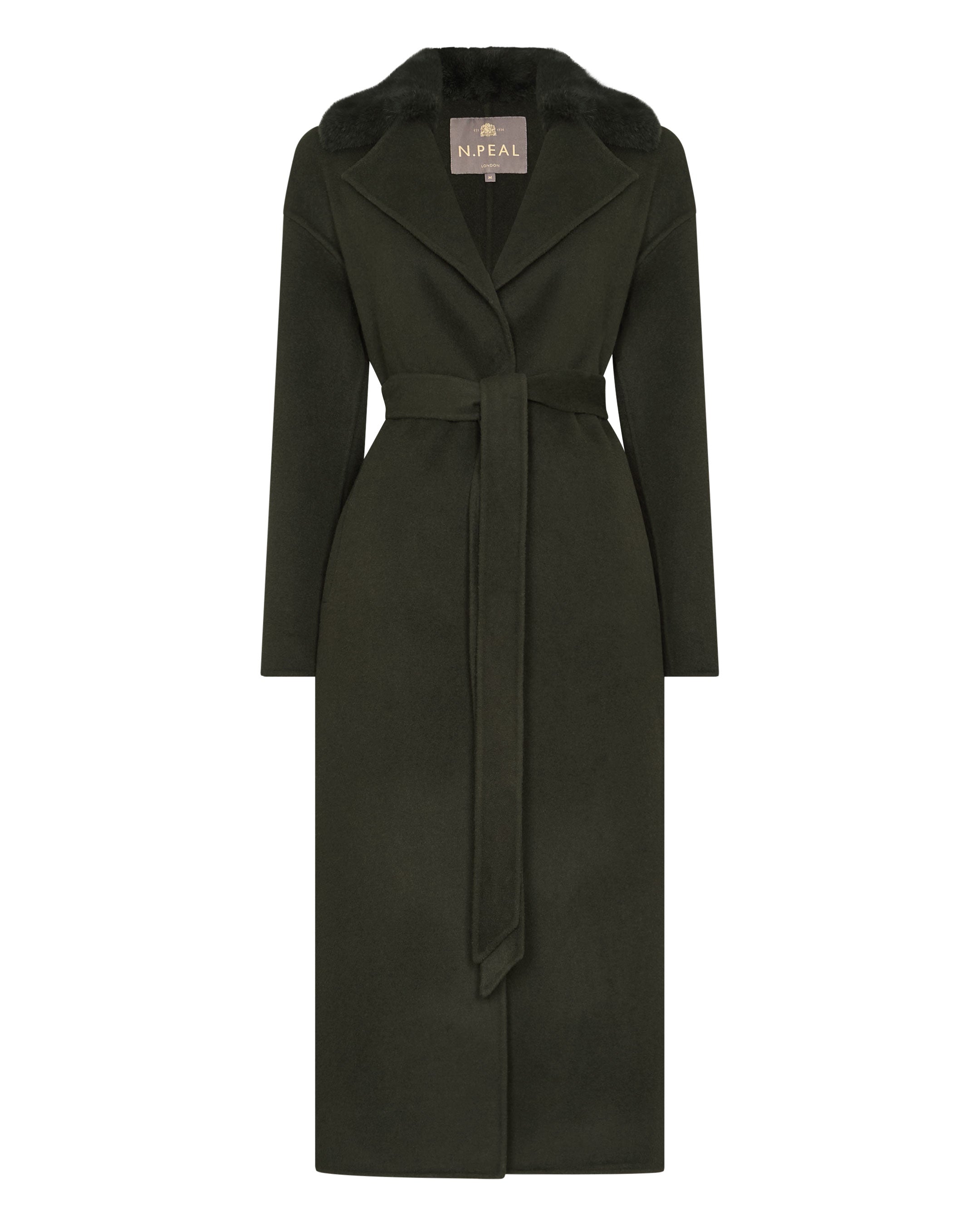 An elegant answer to winter layering, this longline N.Peal coat is defined by its clean lines, luxurious texture and soft structure. The rich forest green hue is balanced by a plush fur collar and a fluid wrap belt, allowing you to cinch the waist or wear it loose over refined layers. Tailored yet cocooning, this coat is a sophisticated staple for both city dressing and countryside escapes.