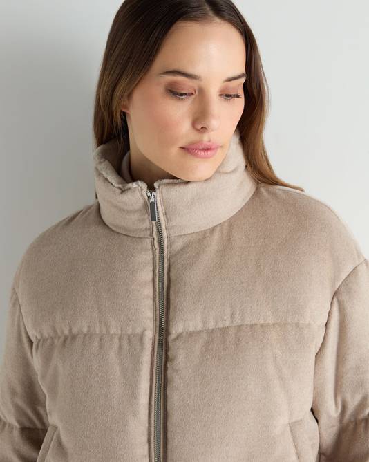 A refined take on cold-weather comfort, this padded jacket offers warmth with a lightness of touch. Finished with tonal fur cuffs for a subtle textural contrast, it brings a sense of quiet luxury to everyday layering — effortlessly suited to city streets or countryside escapes.
