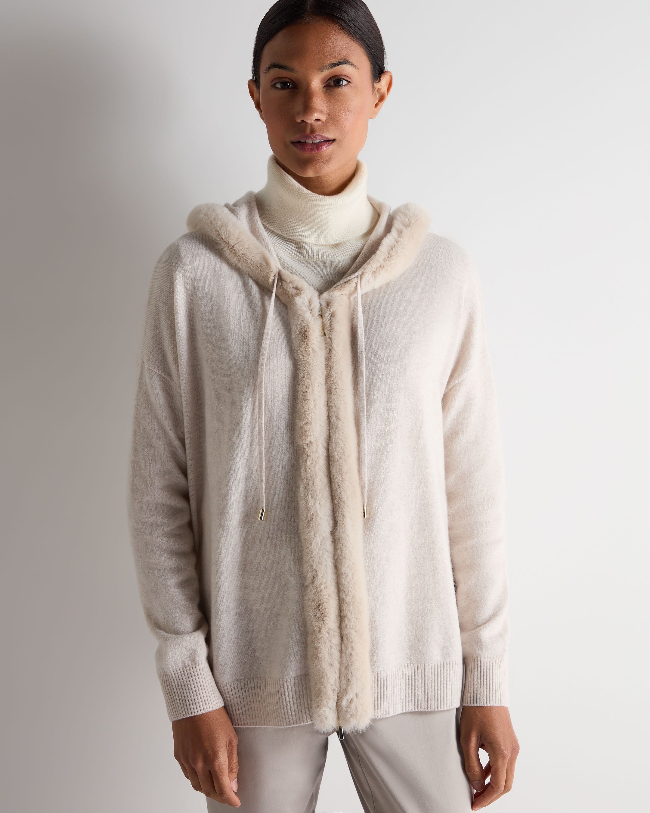 Women's Alicia Fur Trim Cashmere Hoodie In Frost White