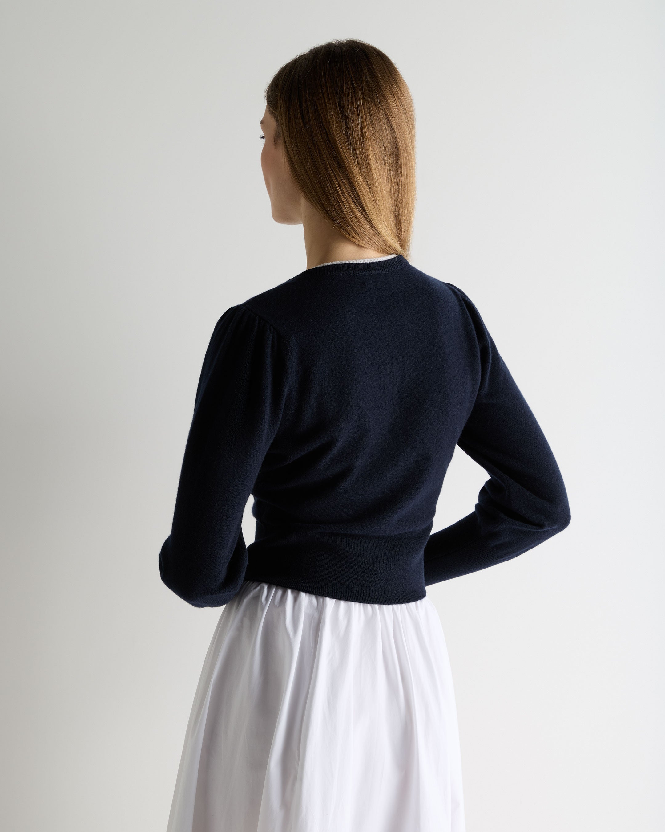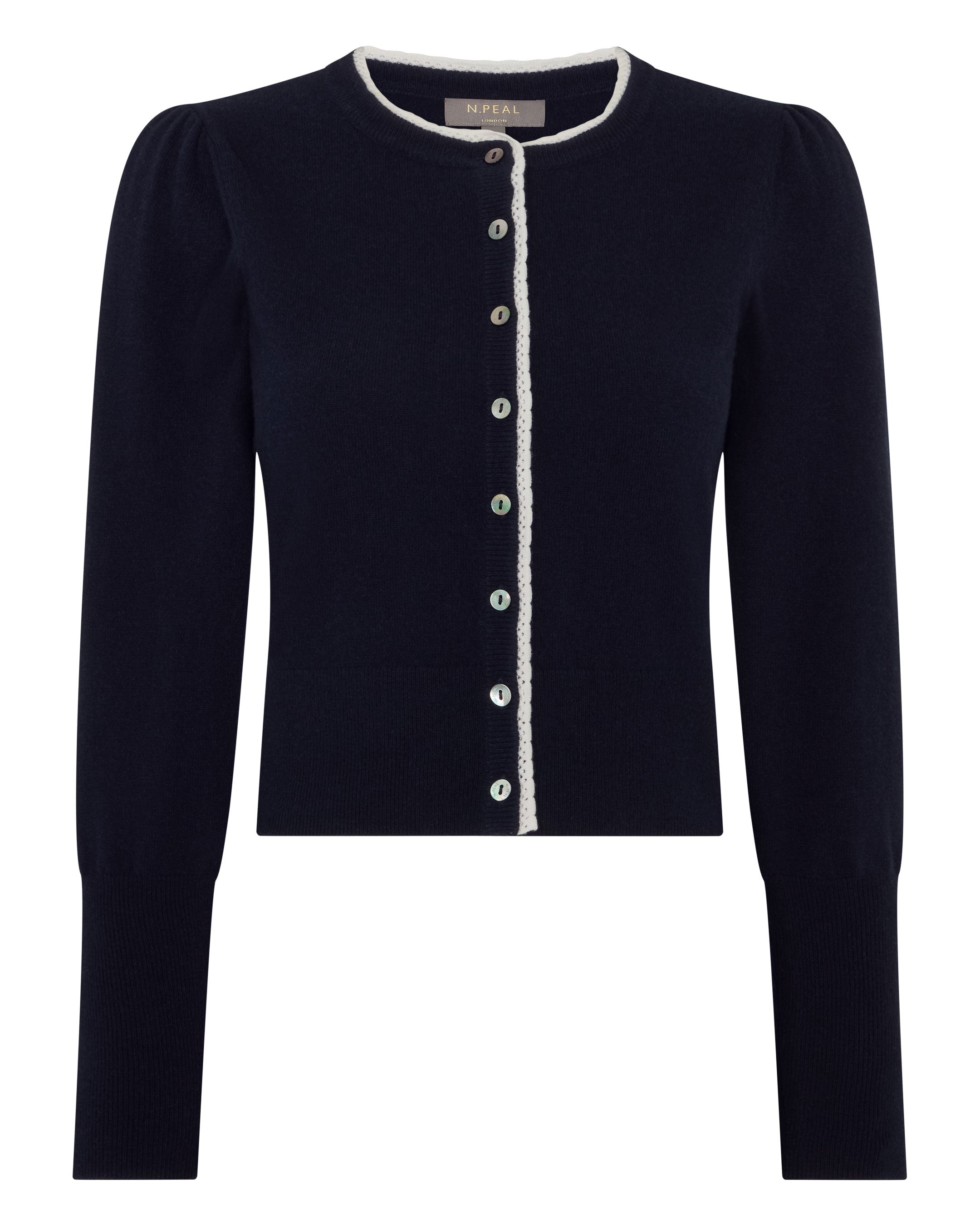 Women's Lace Trim Cashmere Cardigan In Navy Blue