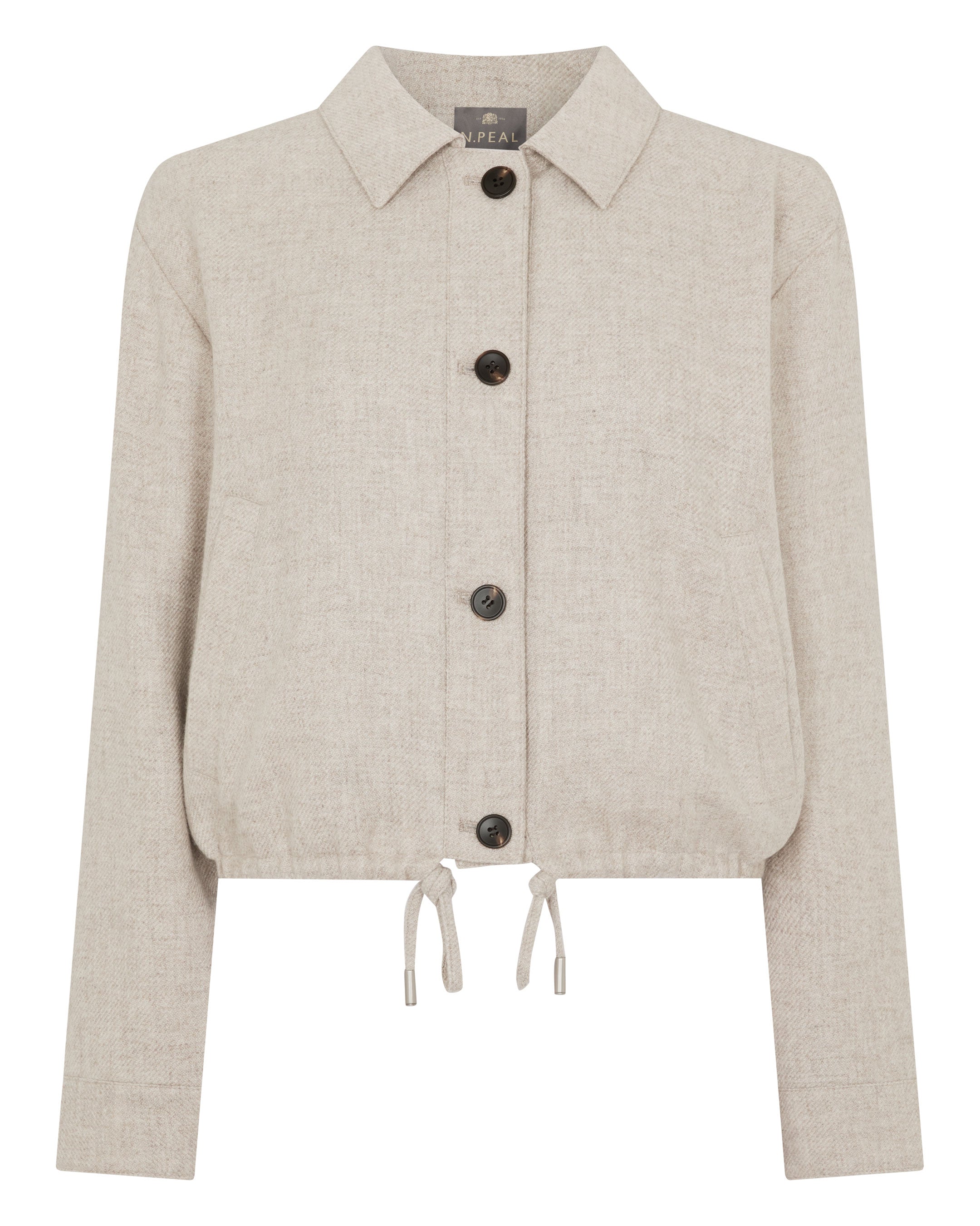 Refined yet relaxed, this woven cashmere jacket brings a quietly luxurious edge to everyday dressing. The softly structured silhouette, adjustable drawcord hem and clean button-through front create a modern layer designed to slip effortlessly between polished days and easy weekends.