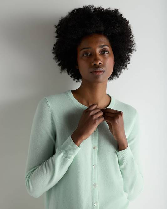 Women's Olivia Round Neck Cashmere Cardigan In Mint Green