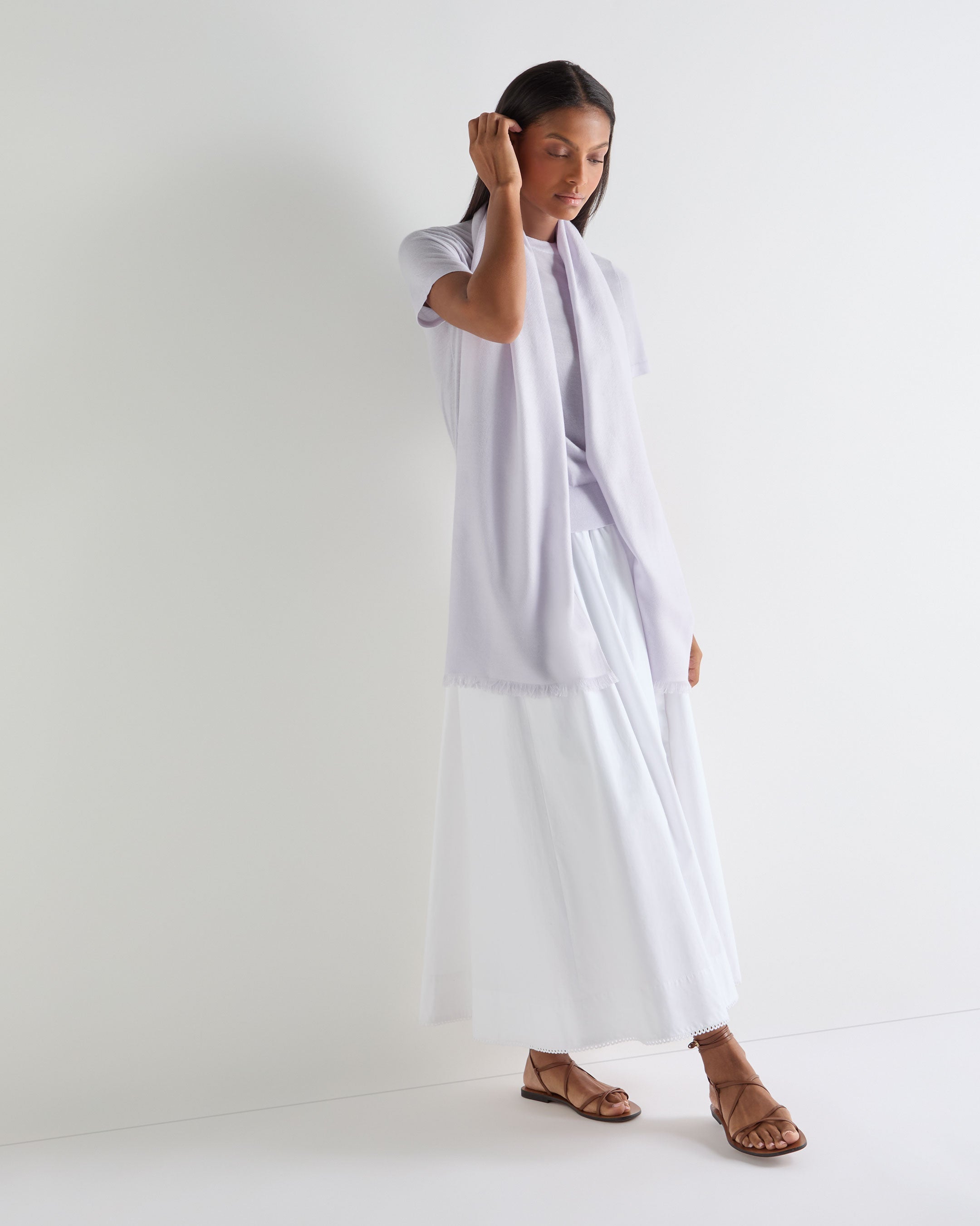 An essential layering piece for cooler days and crisp evenings, this pashmina stole is crafted from pure woven cashmere for a featherlight hand feel with luxurious warmth. Designed with soft fringing, it moves seamlessly from travel companion to elegant evening wrap.