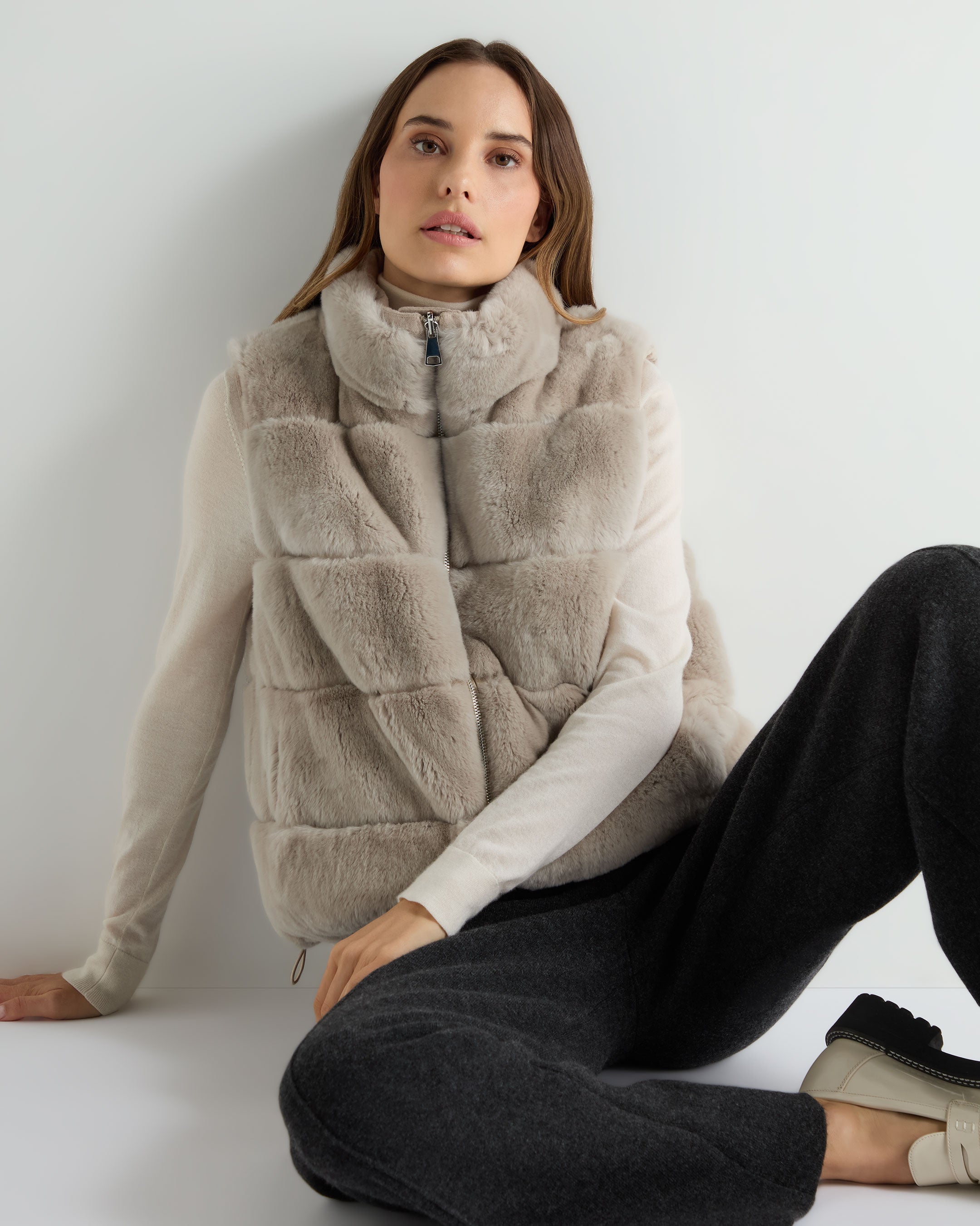 Double your style options with our new reversible rex fur gilet.