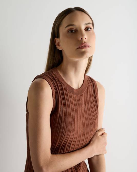 A refined essential designed to travel seamlessly between moments, this ribbed tank top brings quiet confidence to warm-weather dressing. Clean in line and purposeful in fit, this is a piece that works just as well worn alone on sunlit days as it does styled as part of a considered set.