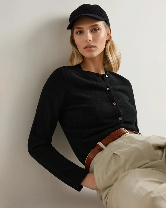 Women's Hallie Round Neck Cashmere Cardigan In Black