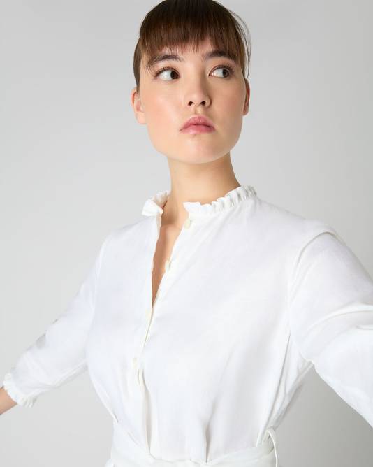 - Half placket with ruffle neckline