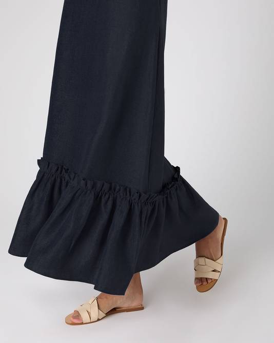 Women's Sofia Ruffle Linen Skirt In Navy Blue