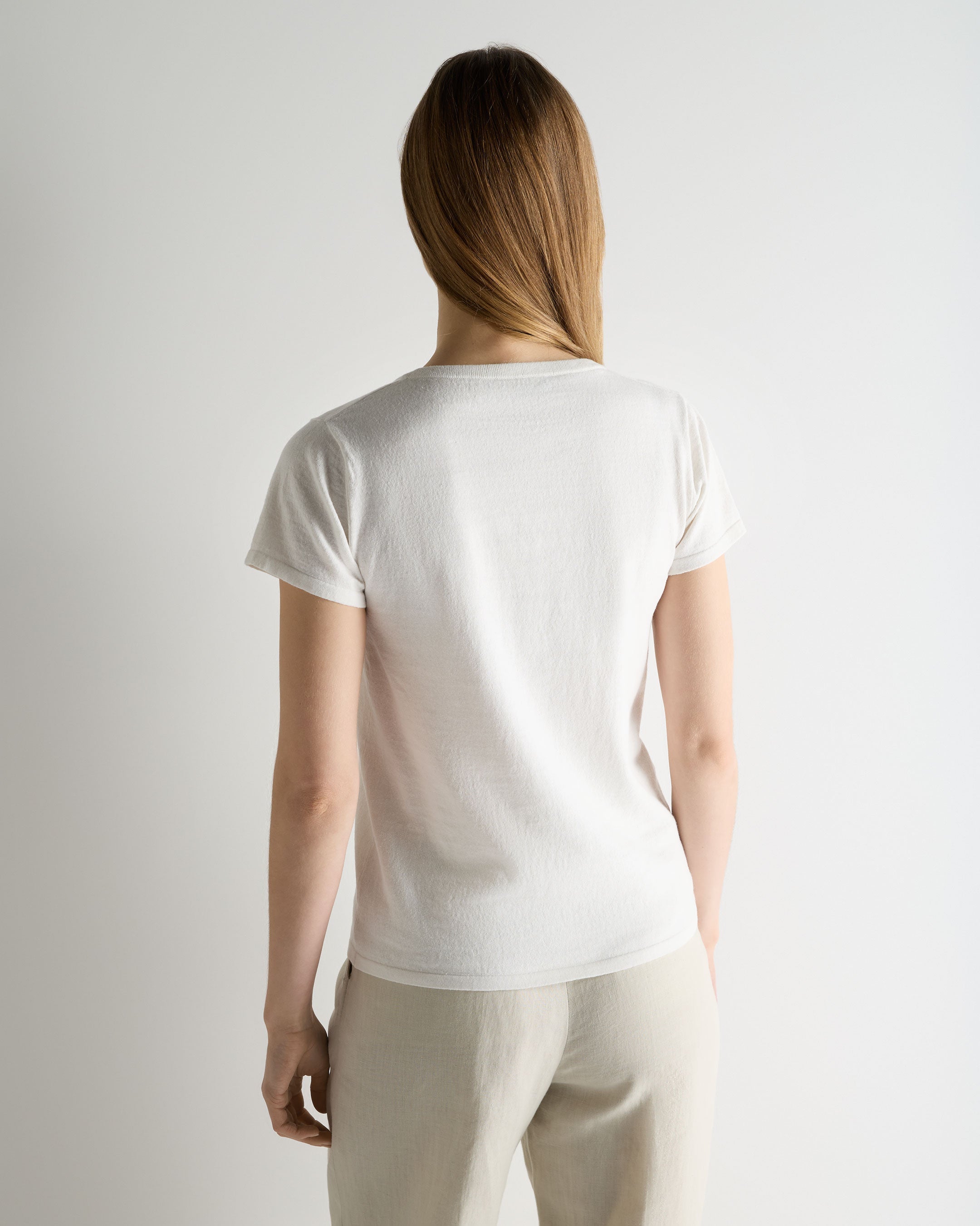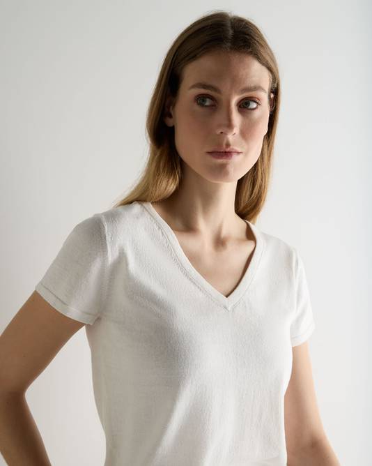 A refined essential designed for warm-weather ease, this linen-blend top brings a light, confident polish to everyday dressing. Cut with a clean V-neck and short sleeves, it’s the kind of piece that slips effortlessly into life on the move — ideal for travel days, long lunches and unhurried moments between destinations.