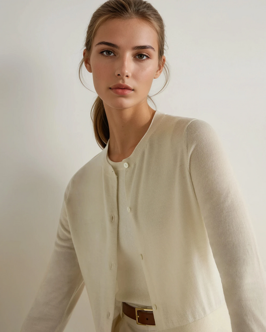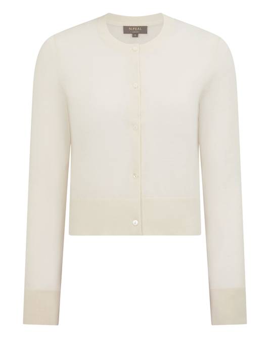 Women's Superfine Cashmere Round Neck Cardigan In New Ivory White