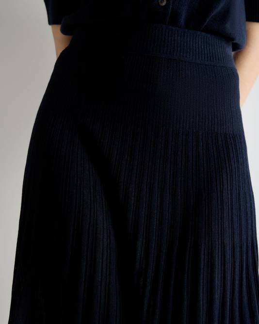Women's Superfine Pleated Cashmere Silk Skirt In Navy Blue