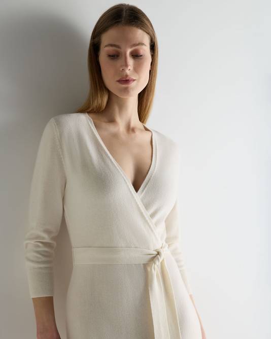 Women's Willa Wrap Cashmere Dress In New Ivory White