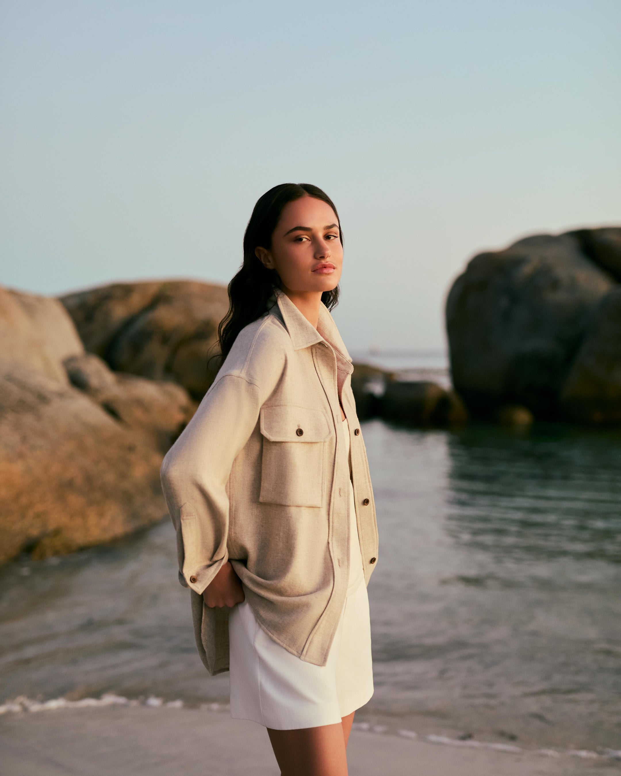 An effortless layer that sits confidently between shirt and jacket, this woven cashmere overshirt is built for days that call for flexibility and polish in equal measure. Relaxed yet refined, this is the piece you will reach for when moving between morning errands, travel days and unplanned pauses along the way.